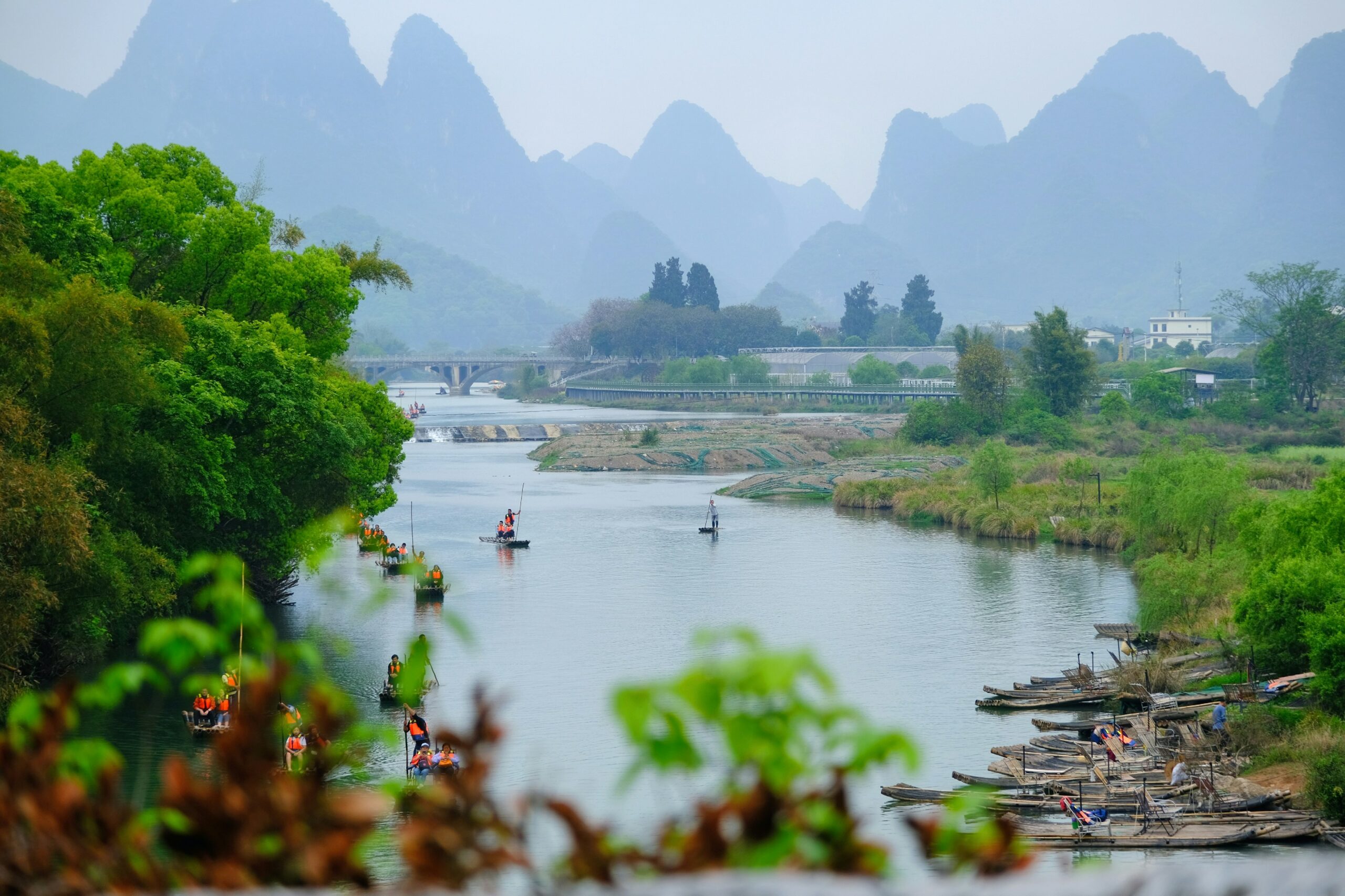 Morning: Embark on a Li River cruise or bamboo raft ride from Guilin to Yangshuo, passing dramatic karst peaks, water buffalo, and fishermen on bamboo rafts.